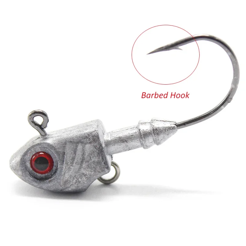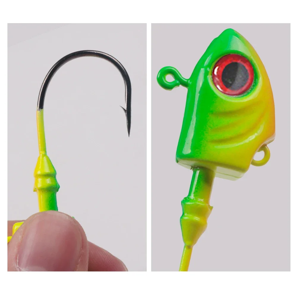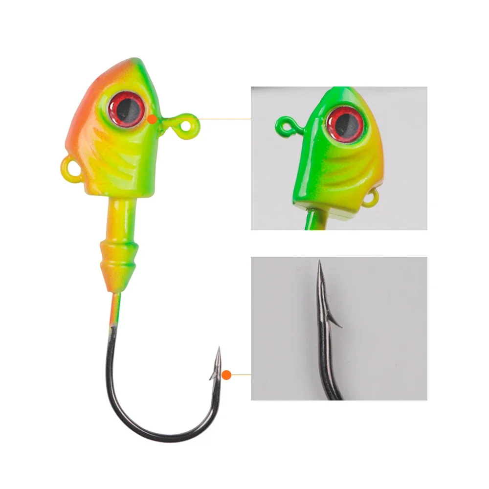 🎣 What it is - Elevate your fishing game with our 5-piece Jighead Fishhooks set, featuring weights of 5g, 7g, 10g, 14g, and 20g. Each jig head showcases a sleek fish shape design, crafted from durable stainless steel, ensuring you snag those big catches effortlessly. With realistic 3D eyes, these hooks are perfect for pairing with soft worms or lures, providing an irresistible appeal for fish.